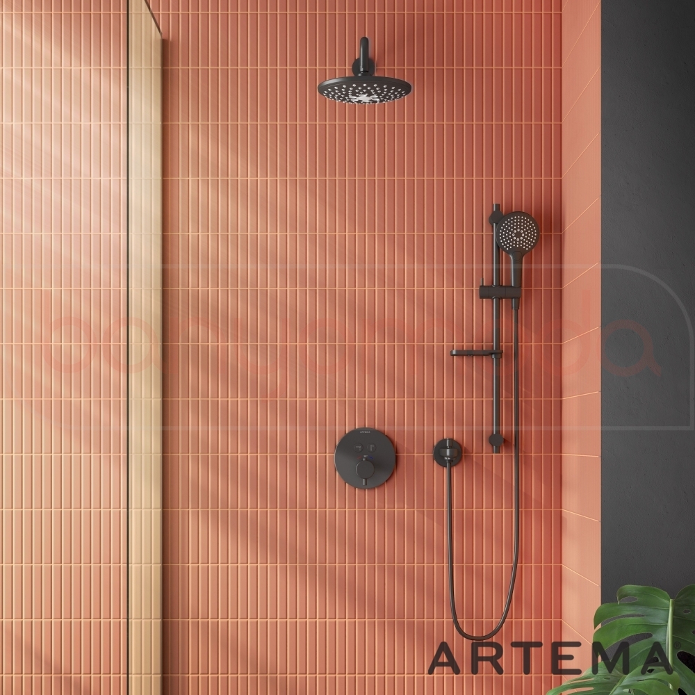 Artema AquaHeat Termostatik Ankastre Banyo Bataryası (Sıva Üstü Grubu), Mat Siyah