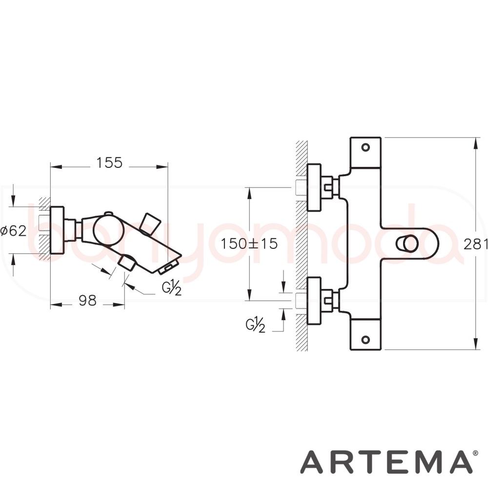 | Ürün Adı: | Artema AquaHeat Termostatik Banyo Bataryası, Mat Siyah |