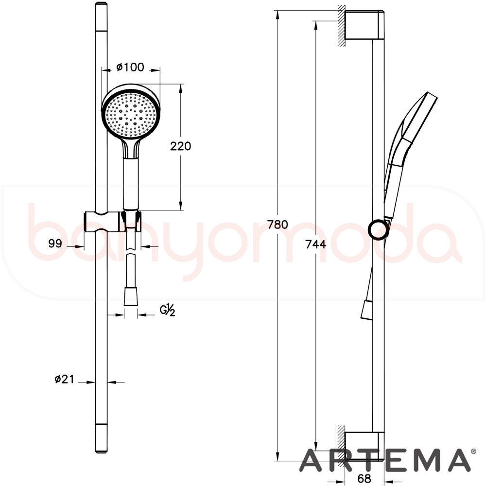 | Ürün Adı: | Artema Base Round 1F Sürgülü El Duşu Takımı |