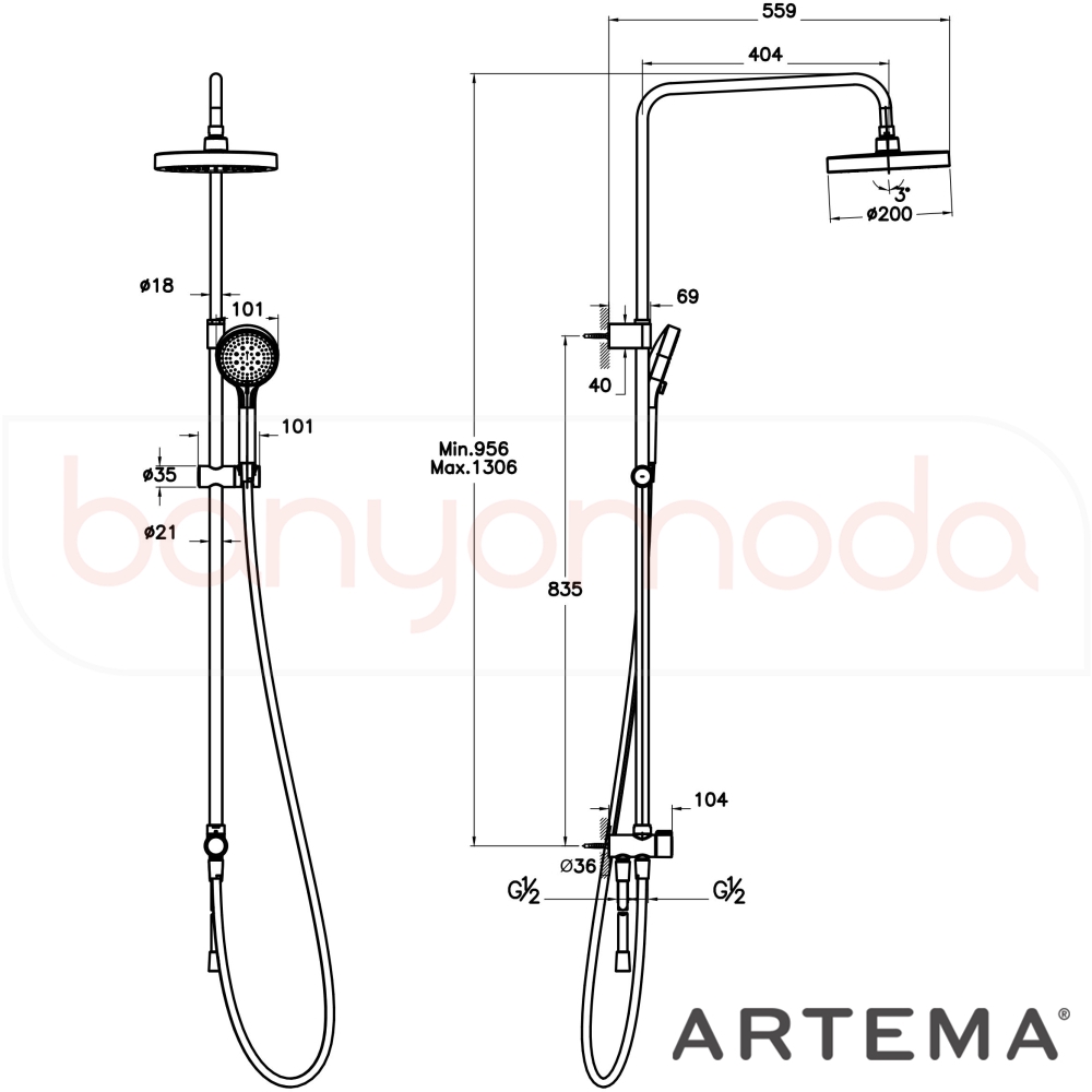 | Ürün Adı: | Artema Base Round 200 Duş Kolonu |
