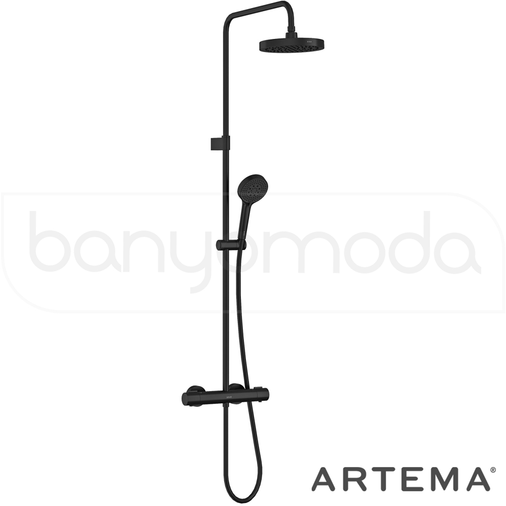 Artema Base Round 200 Duş Kolonu ve Termostatik Duş Bataryası Sistemi, Mat Siyah - A4730536