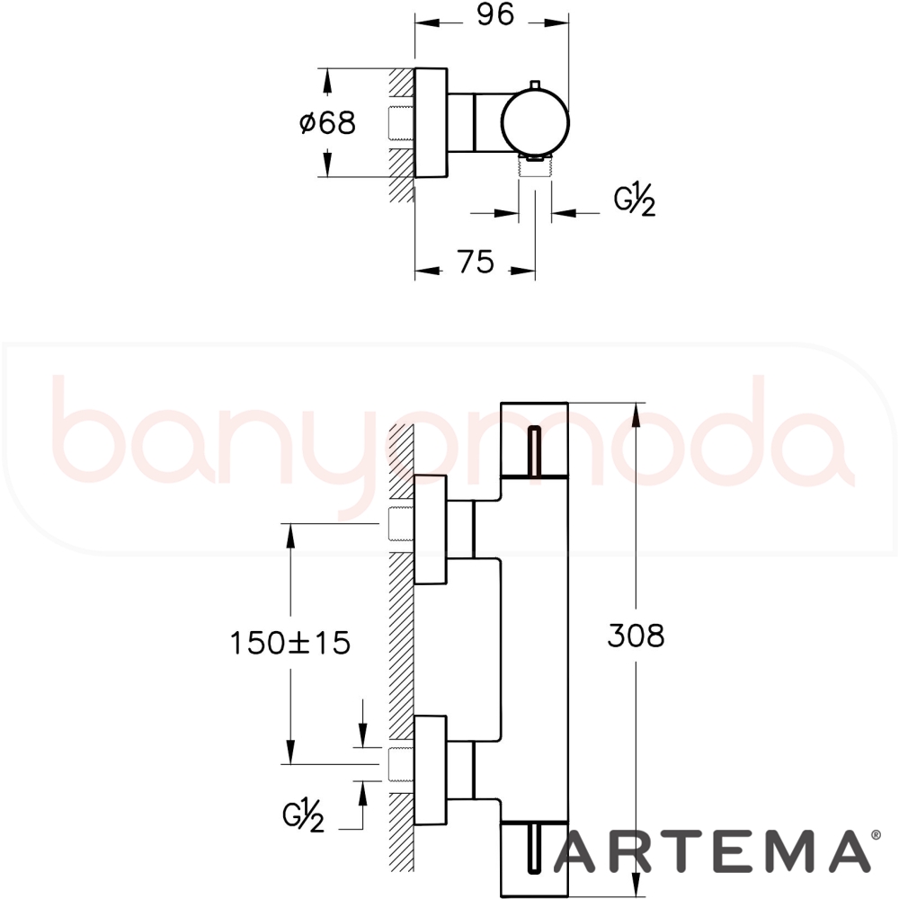 | Ürün Adı: | Artema Base Round Termostatik Duş Bataryası |