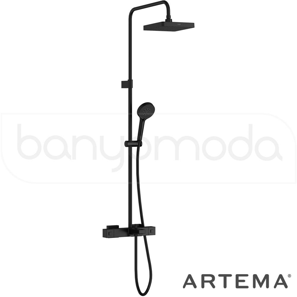 Artema Base Square 200 Duş Kolonu ve Termostatik Banyo Bataryası Sistemi, Mat Siyah - A4730436