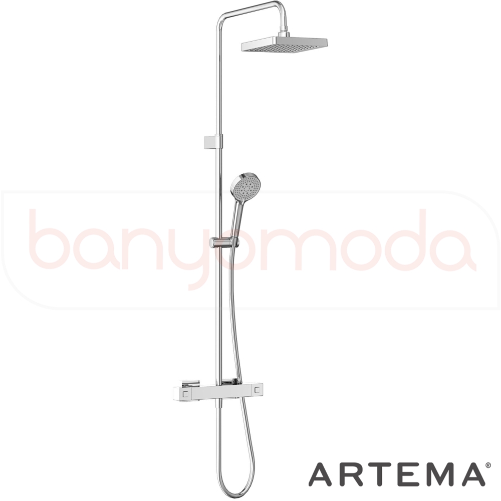 Artema Base Square 200 Duş Kolonu ve Termostatik Duş Bataryası Sistemi - A47306