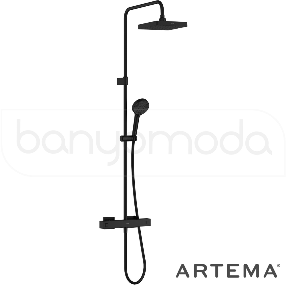 Artema Base Square 200 Duş Kolonu ve Termostatik Duş Bataryası Sistemi, Mat Siyah - A4730636