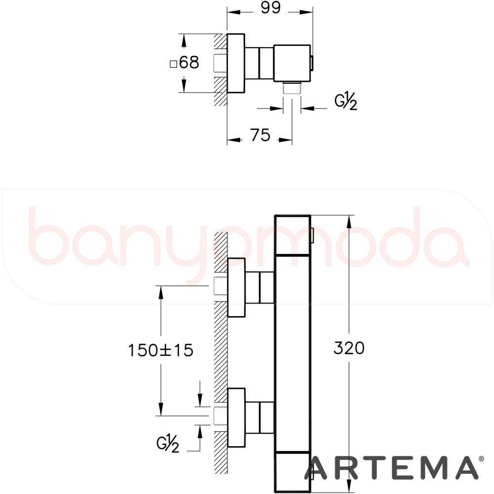 | Ürün Adı: | Artema Base Square Termostatik Duş Bataryası, Mat Siyah |
