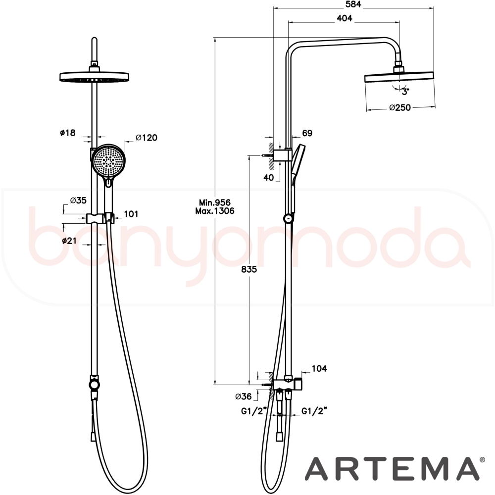 | Ürün Adı: | Artema Core Round 250 Duş Kolonu, Mat Siyah |