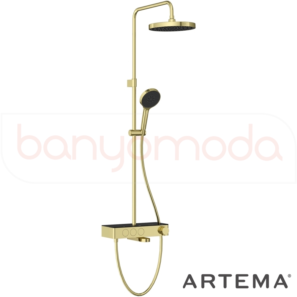 Artema Core Round 250 Duş Kolonu ve Termostatik Banyo Bataryası Sistemi, Soft Altın - A4730974