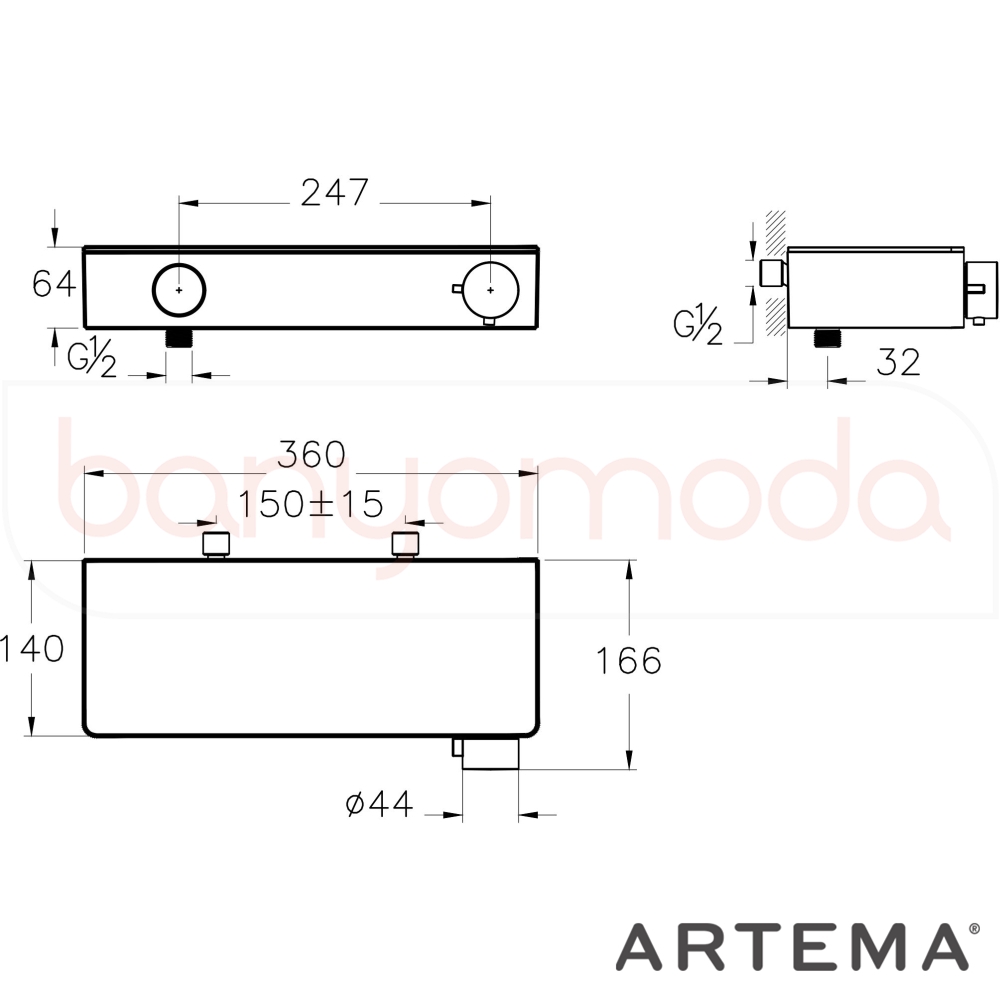 | Ürün Adı: | Artema Core Round Termostatik Duş Bataryası, Fırçalı Bakır |
