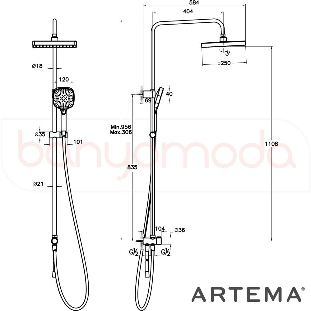 | Ürün Adı: | Artema Core Square 250 Duş Kolonu |