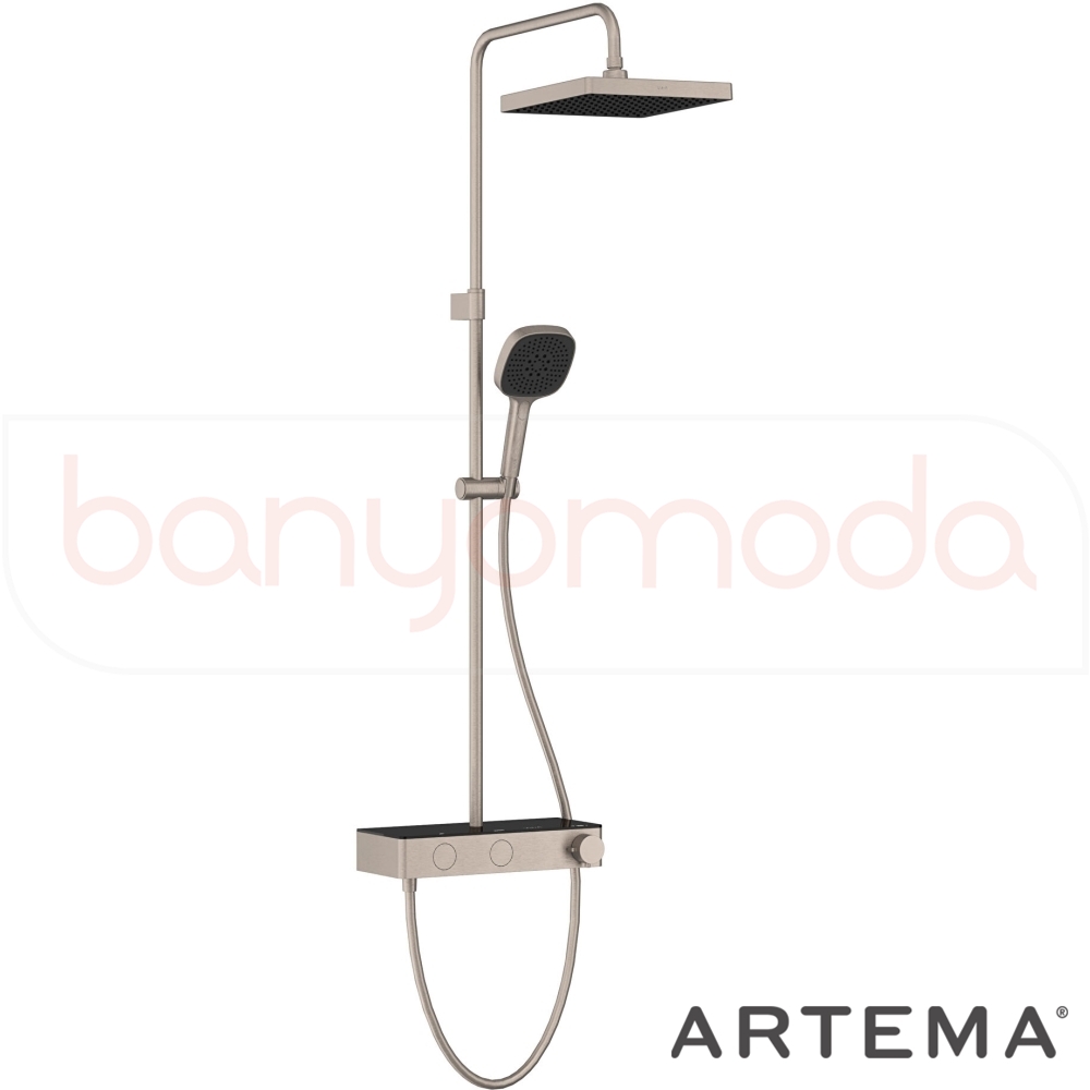 Artema Core Square 250 Duş Kolonu ve Termostatik Duş Bataryası Sistemi, Fırçalı Nikel - A4731234