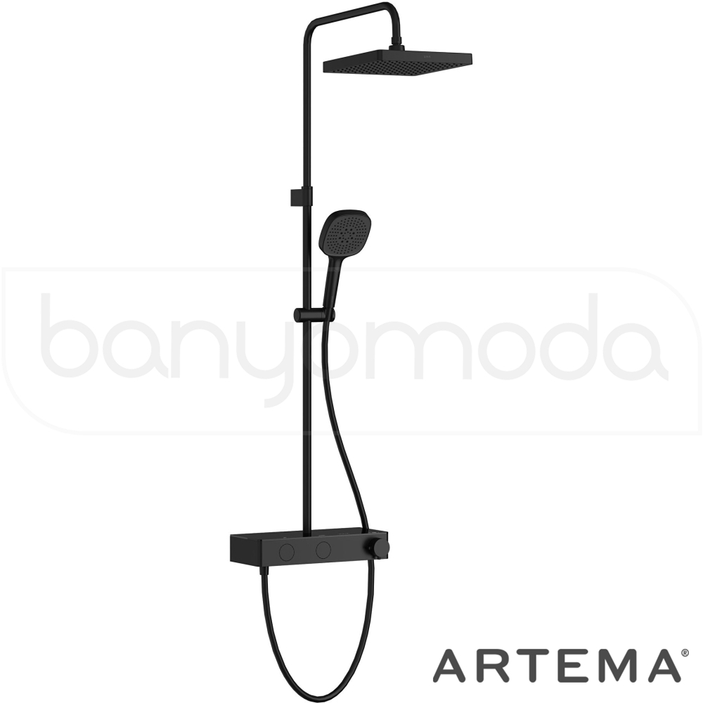 Artema Core Square 250 Duş Kolonu ve Termostatik Duş Bataryası Sistemi, Mat Siyah - A4731236