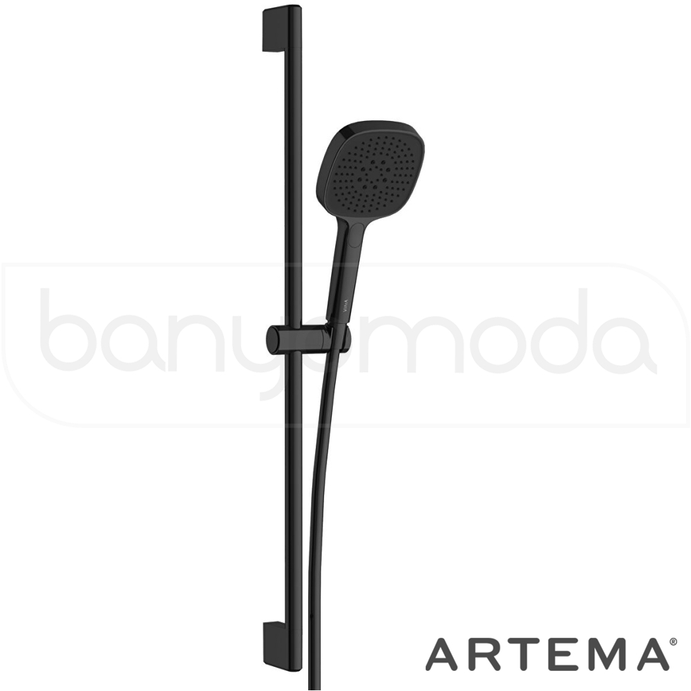 Artema Core Square 3F Sürgülü El Duşu Takımı, Parlak Siyah