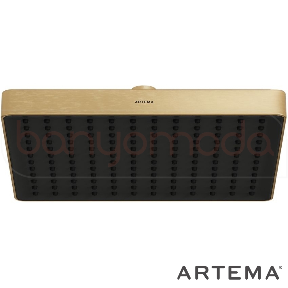 Artema Core Square Duş Başlığı, 25 cm, Tek Fonksiyonlu, Fırçalı Altın