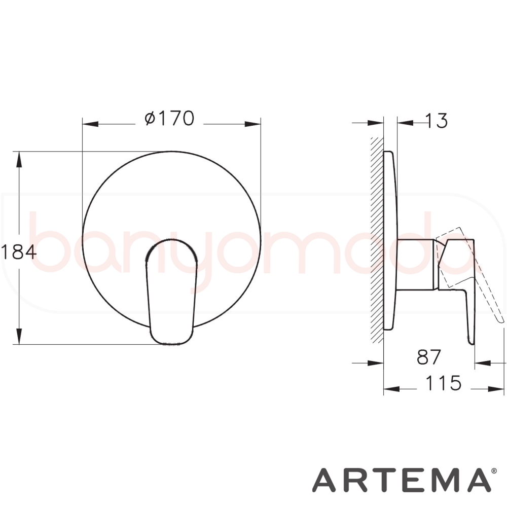 | Ürün Adı: | Artema Flow Soft Ankastre Duş Bataryası, Mat Siyah (V-Box Sıva Üstü Grubu) |