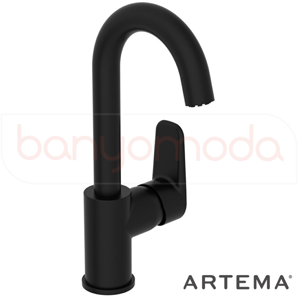 Artema Flow Soft Lavabo Bataryası, Mat Siyah (Döner Borulu) - A4316036
