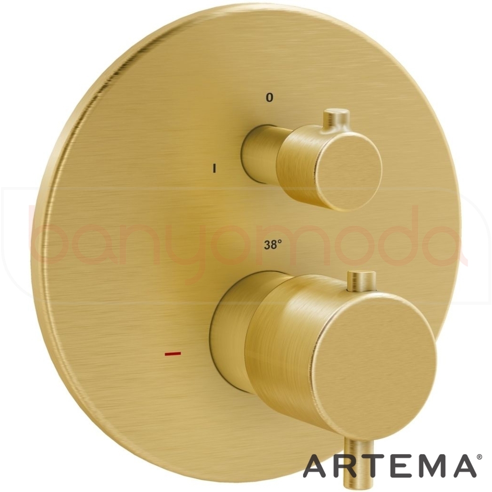 Artema Flow Soft Termostatik Ankastre Banyo Bataryası (V-Box Sıva Üstü Grubu) Fırçalı Altın