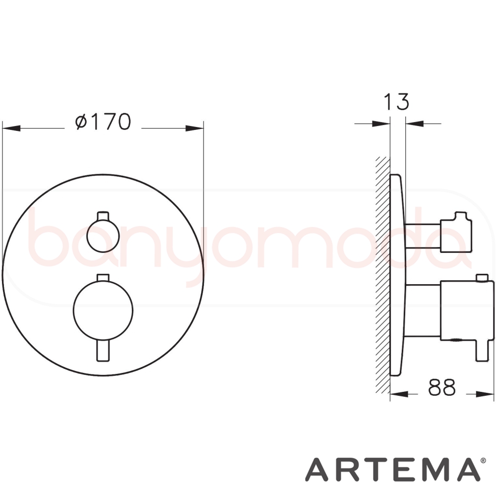 | Uyarı ve Genel Açıklamalar: | Kaba inşaat sırasında A42806 kullanılarak sıva altı montajı yapılmalıdır. Sıva altı grubu ürüne dahil değildir. Ayrıca sipariş edilmelidir. Yönlendirici ile çıkış ucu, duş başlığı, su jetleri veya el duşu (ankastre el duşu çıkışı kullanılarak) seçeneklerinden sadece ikisi kullanılabilir. 38%B0C üzerindeki sıcaklıklara istenmeden çıkılmasını engelleyici emniyet butonu. Termostatik kartuş. Yönlendirici üzerinden 90%B0 açma kapama ve yönlendirme. Kartuş grubu, rozet, kumanda kolu ve yönlendirici ürüne dahildir. |