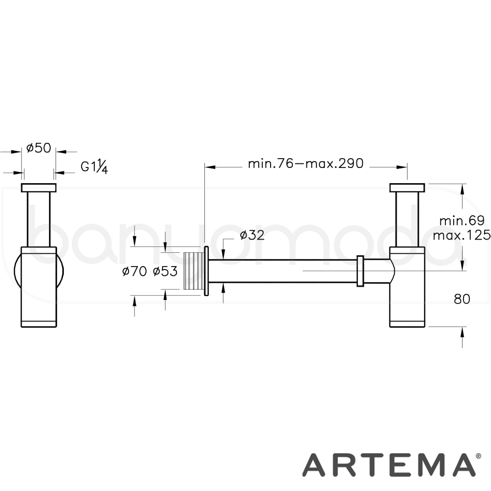 | Uyarı ve Genel Açıklamalar: | G 1 1/4 girişlidir. Lavabo sifon merkezi ile duvar arası min. 76 maks. 290 mm dir. Ölçülerin lavaboya uygunluğu kontrol edilmelidir. Metal taşlıdır. |