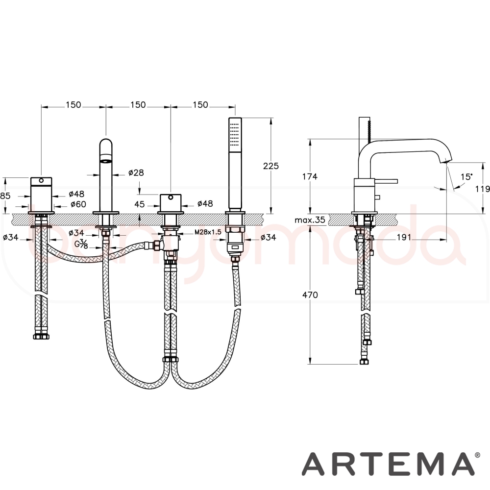 | Ürün Adı: | Artema Minimax Round 4 Delikli Küvet Bataryası, El Duşlu, Soft Altın |