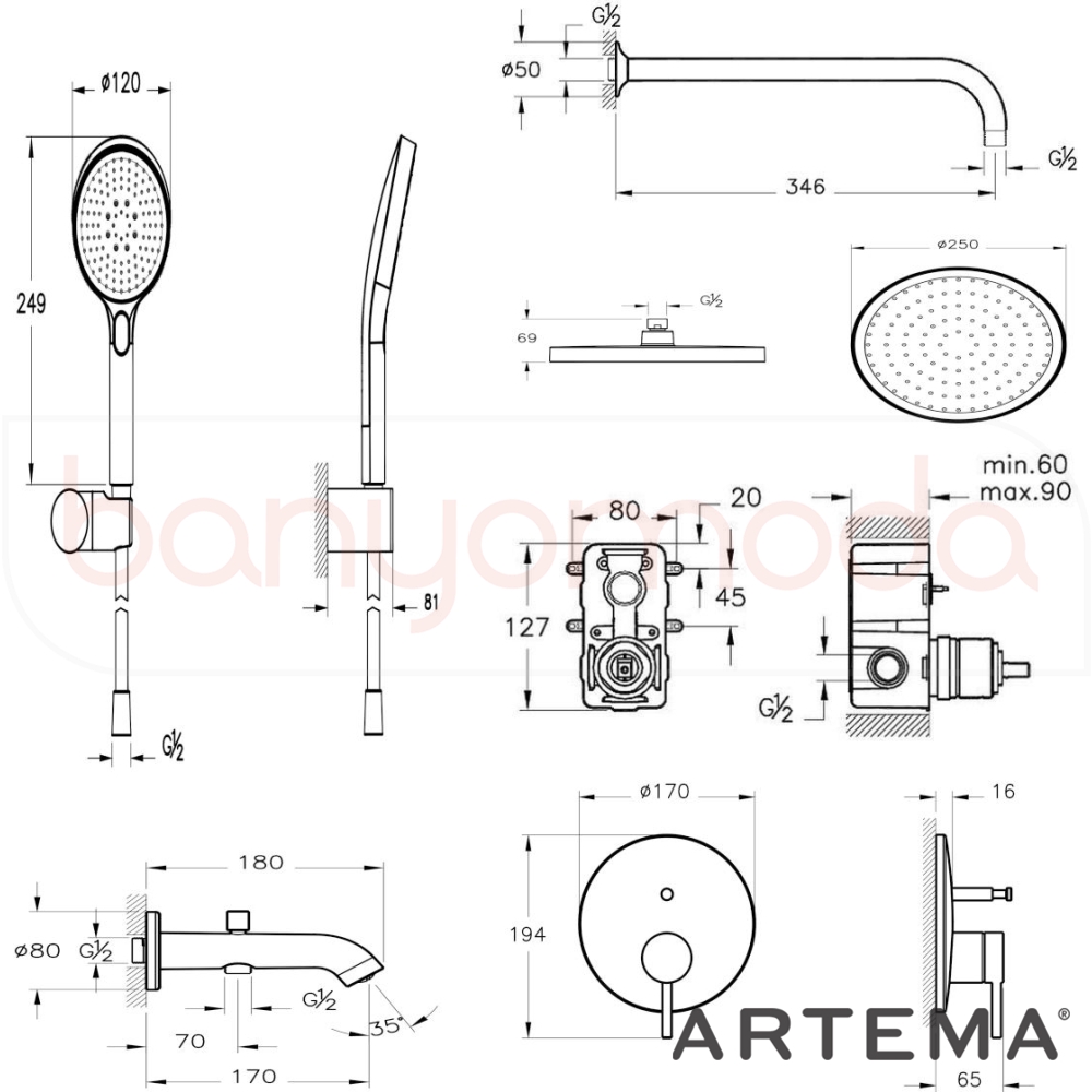 | Ürün Adı: | Artema Minimax Round Ankastre Banyo Seti |