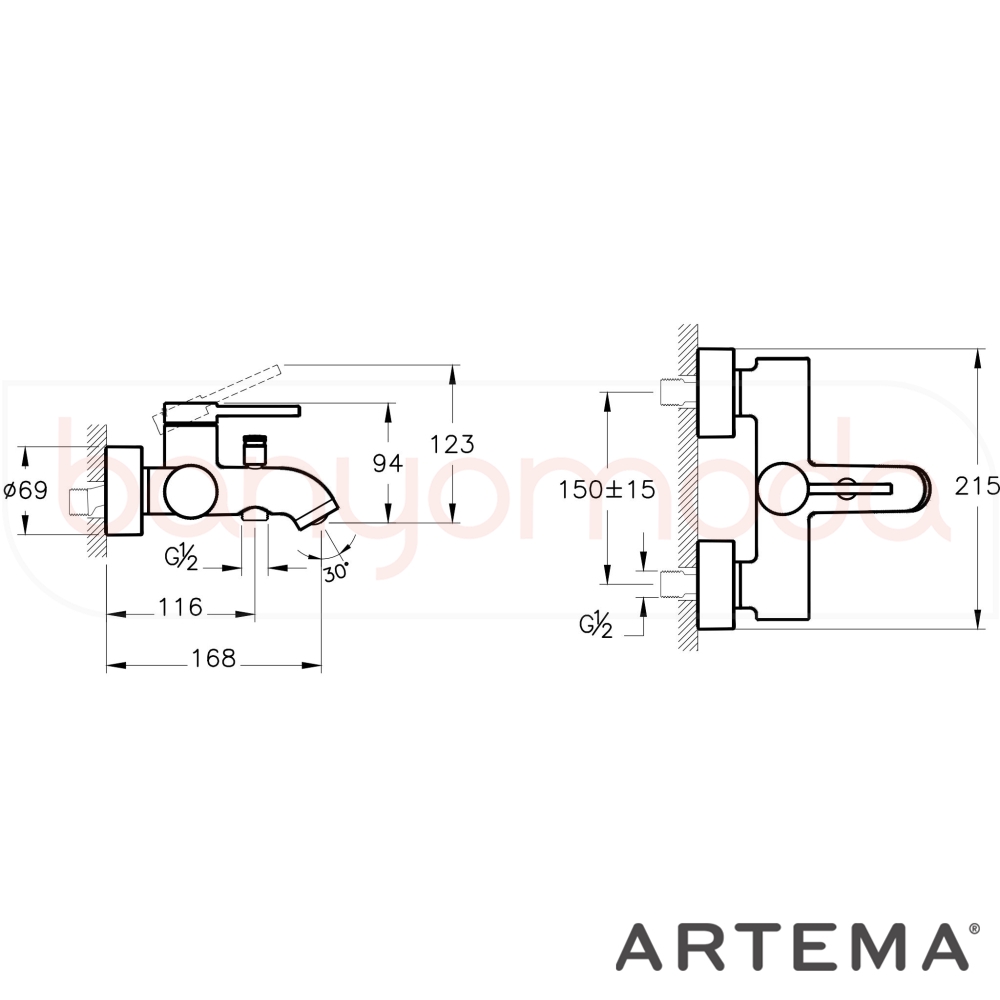 | Uyarı ve Genel Açıklamalar: | El duşu çıkışı G 1/2 tir. Duş kumandası kilitlemelidir. Çıkış ucu uzunluğu 168 mm dir. Isı ve debi limitörlü özel kartuş. |
