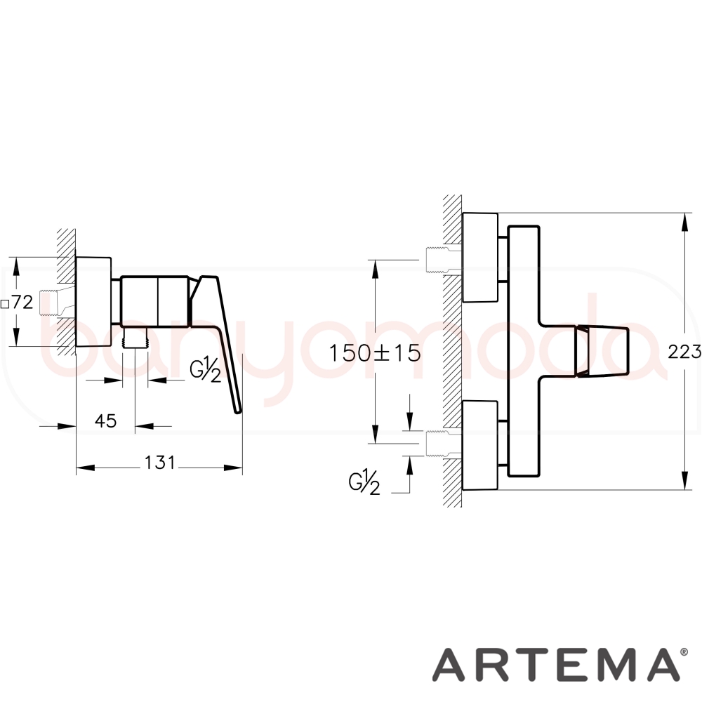 | Ürün Adı: | Artema Minimax Square Duş Bataryası, Fırçalı Nikel |
