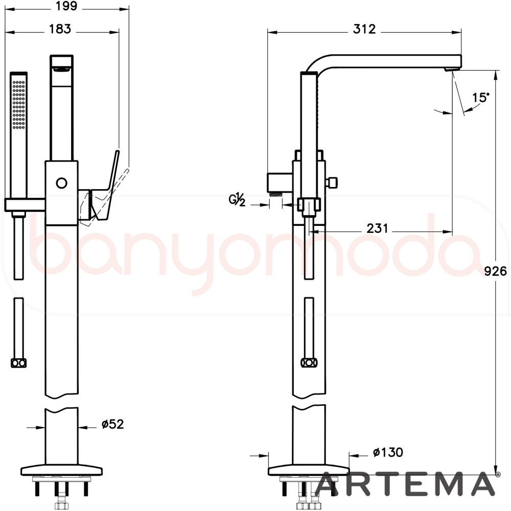 | Ürün Adı: | Artema Minimax Square Yerden Küvet Bataryası, El Duşlu, Mat Siyah |