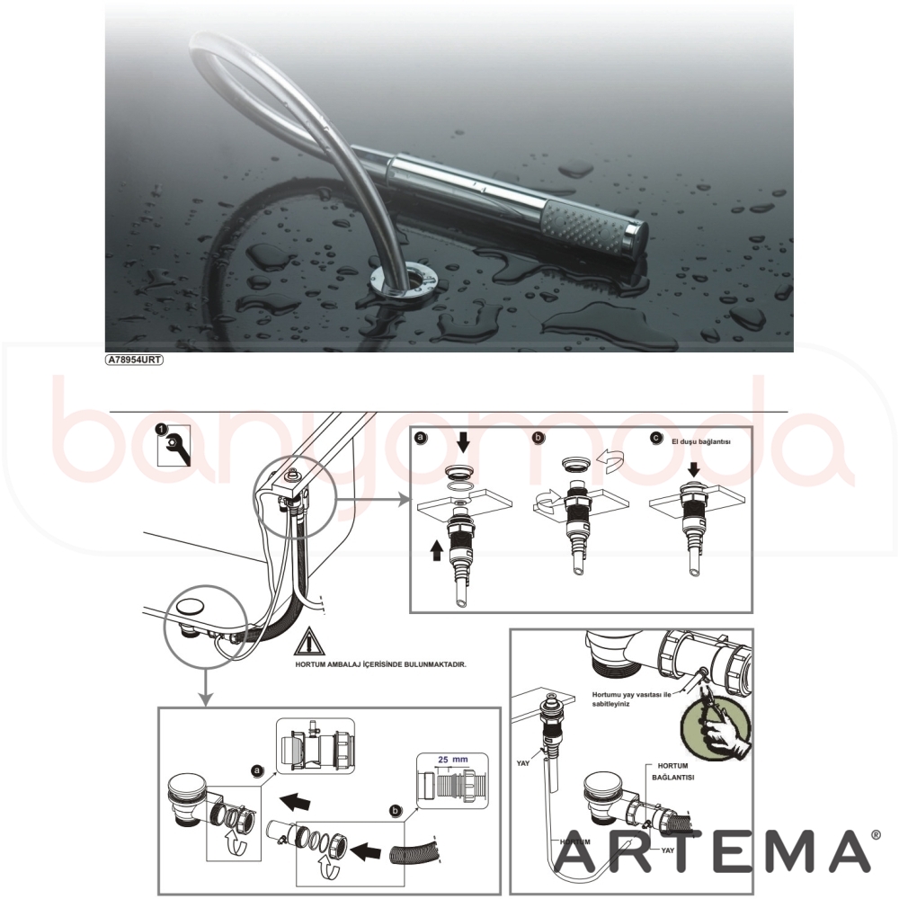 Artema Root Round 4 Delikli Küvet Bataryası, El Duşlu
