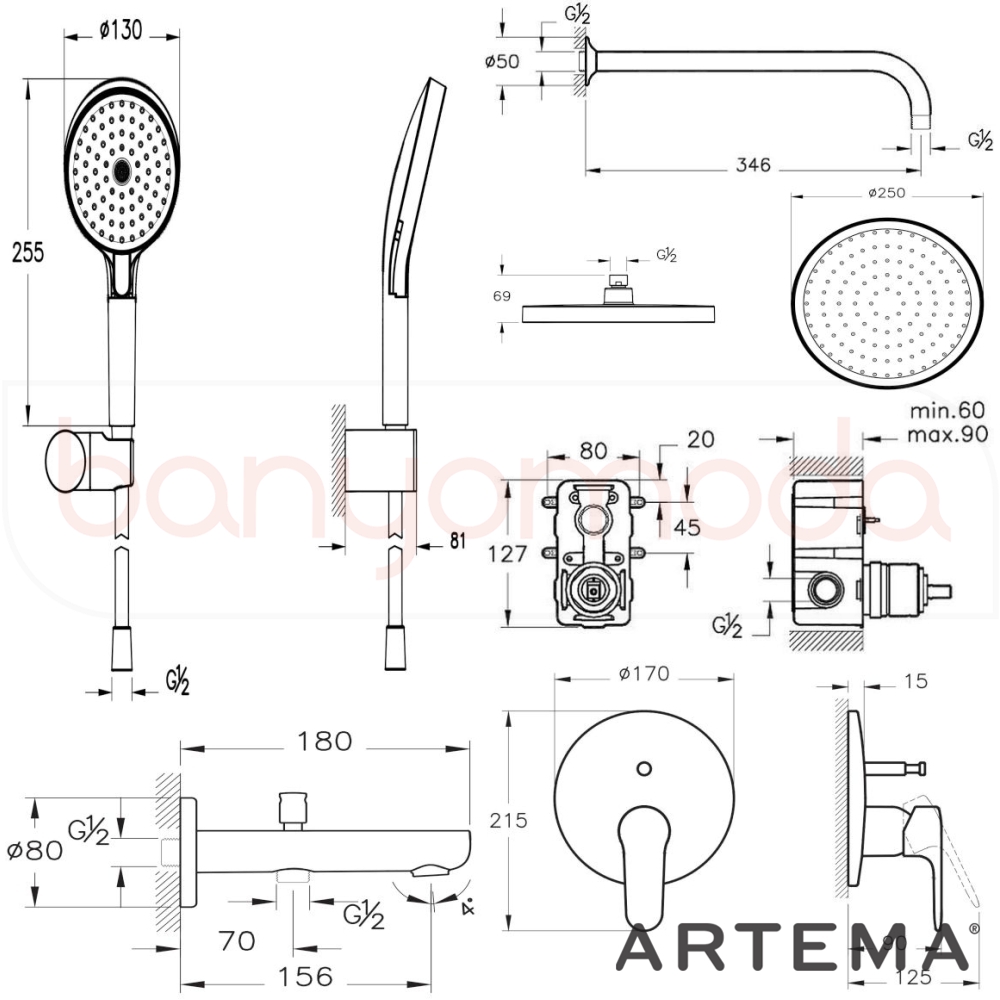 | Ürün Adı: | Artema Root Round Ankastre Banyo Seti, Soft Bakır |