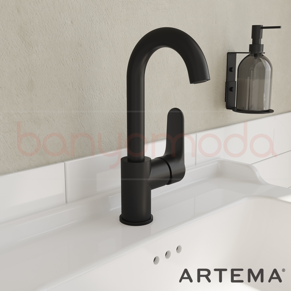 Artema Root Round Döner Borulu Lavabo Bataryası, Mat Siyah