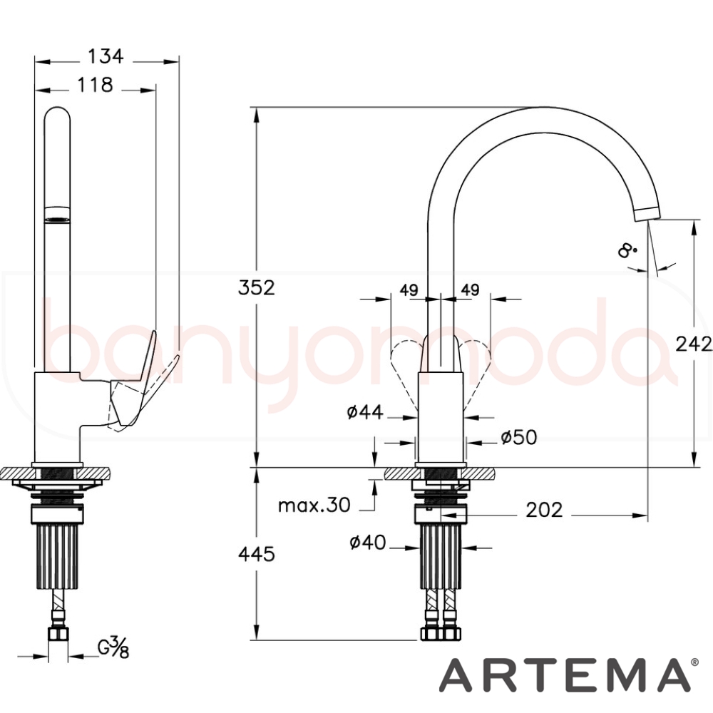 | Ürün Adı: | Artema Shift T10 Eviye Bataryası (C-Tip) |