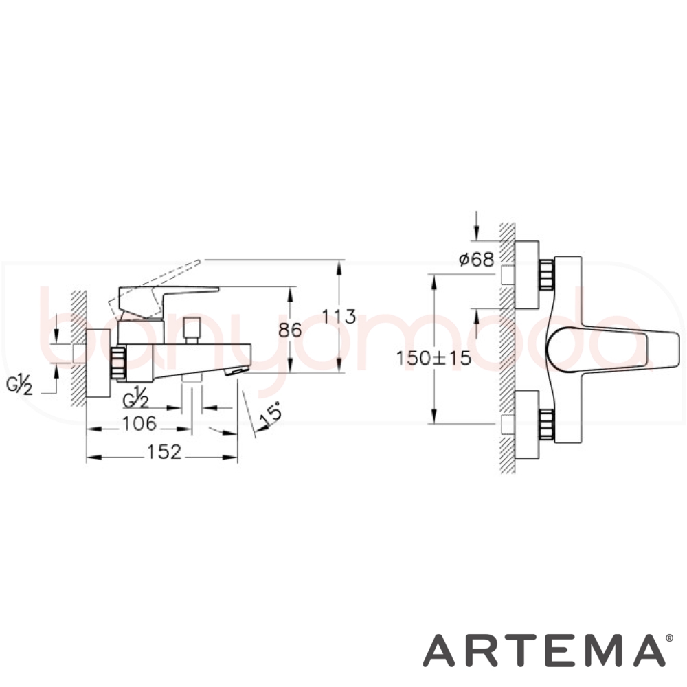 | Ürün Adı: | Artema Shift T30 Banyo Bataryası |