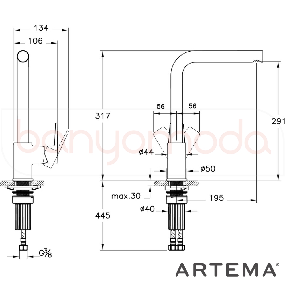 | Ürün Adı: | Artema Shift T30 Eviye Bataryası |