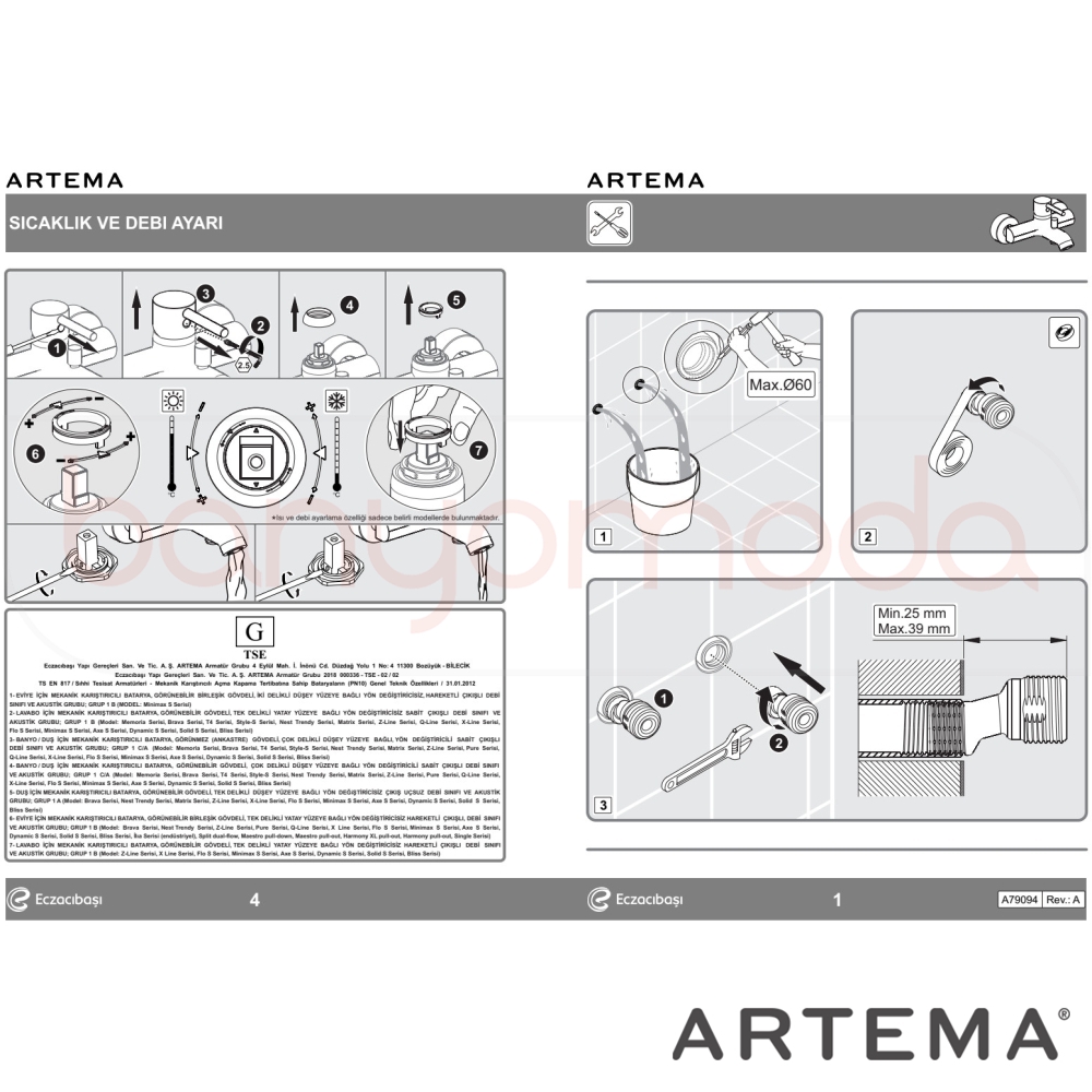 Marka: Artema Ürün Adı: Artema Solid S Banyo Bataryası Ürün Kodu: A42444 Seri: Solid S Yüzey Rengi: Krom Su Tasarrufu: Var-perlatör ve kartuş ile Enerji Tasarrufu: Var-kartuş ile Çıkış Ucu Uzunluğu: 154 mm Perlatör Özelliği: Su tasarruflu Açma / Kapama: Tek kumandalı Kartuş Özelliği: Isı ve debi ayarlı Ücretsiz Montaj: Yok Yetkili Servis Hizmeti: Var Garanti Süresi: 10 yıl Üretim Yeri: Türkiye Uyarı ve Genel Açıklamalar: Duş kumandası kilitlemelidir.