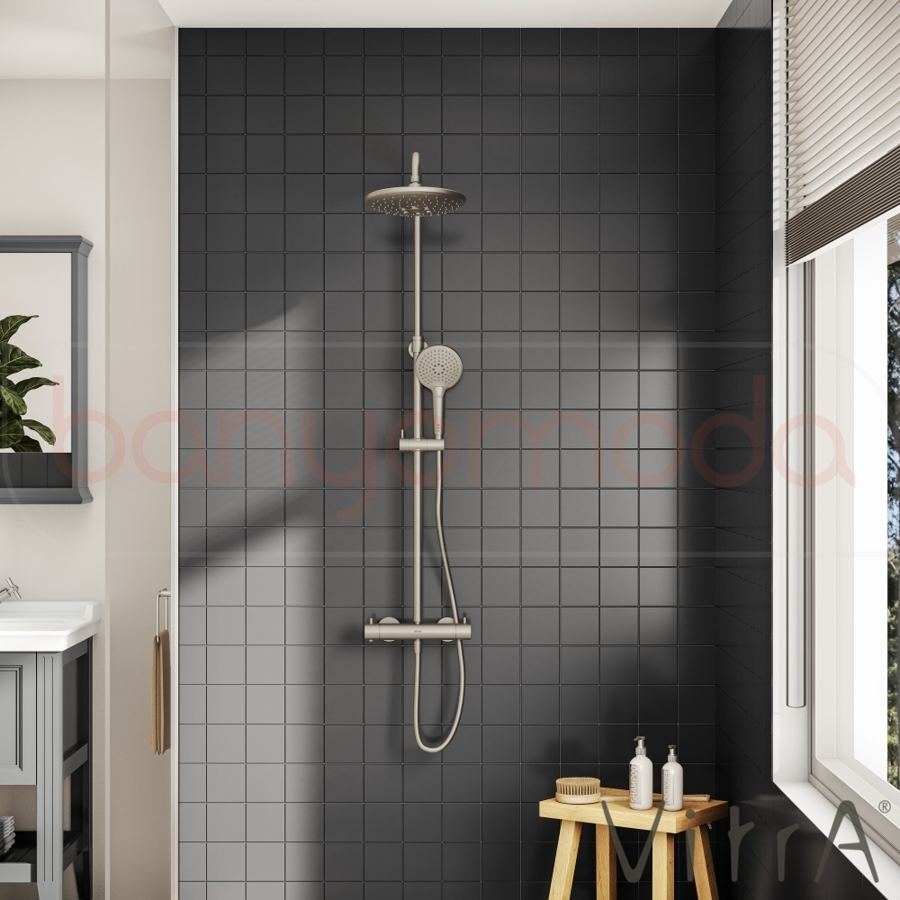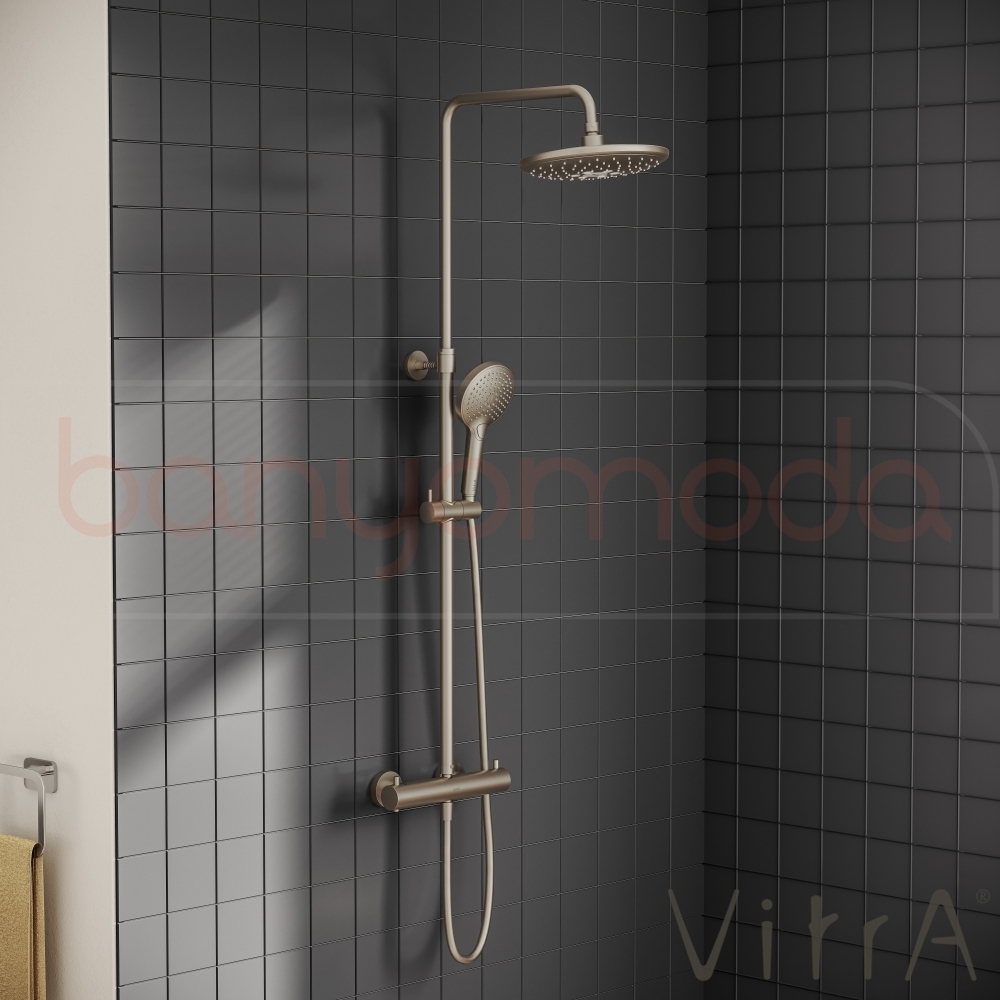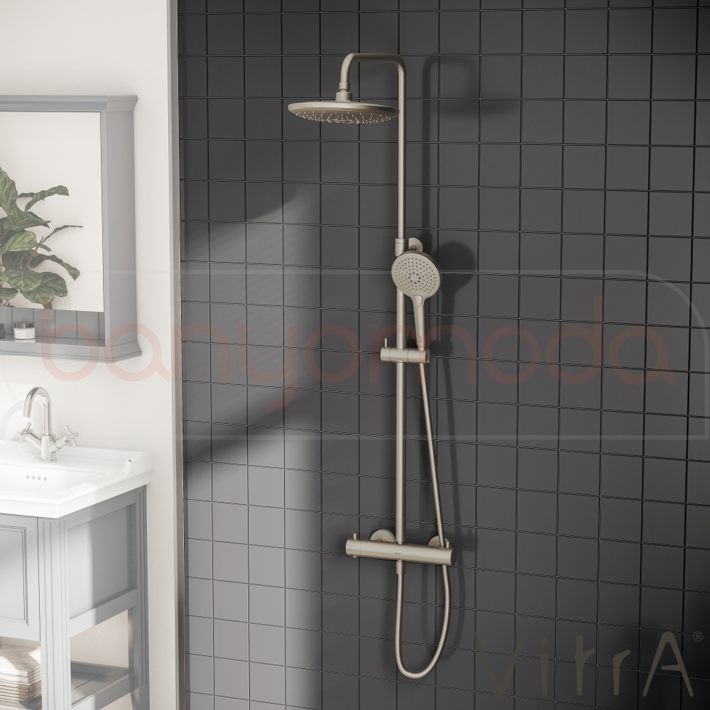 Vitra AquaHeat Bliss 240 2F Duş Kolonu ve Termostatik Duş Bataryası Sistemi, Fırçalı Nikel