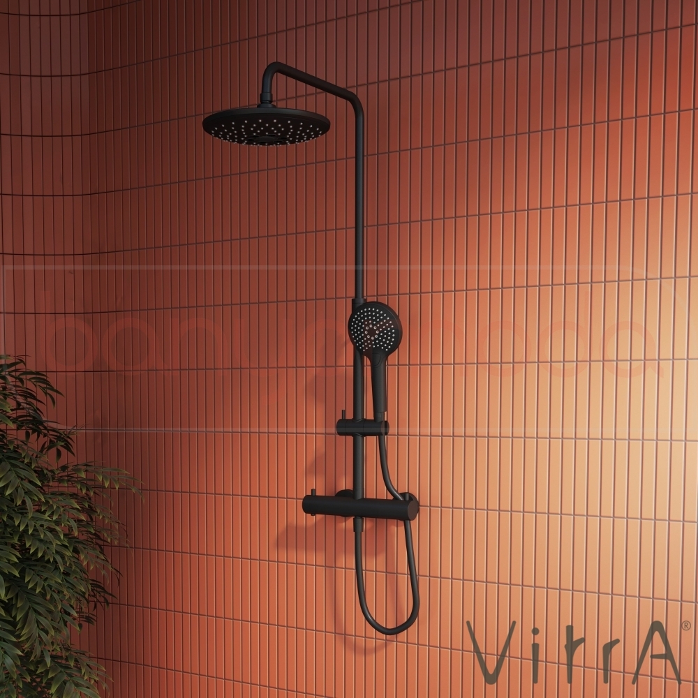 Vitra AquaHeat Bliss 240 2F Duş Kolonu ve Termostatik Duş Bataryası Sistemi, Mat Siyah