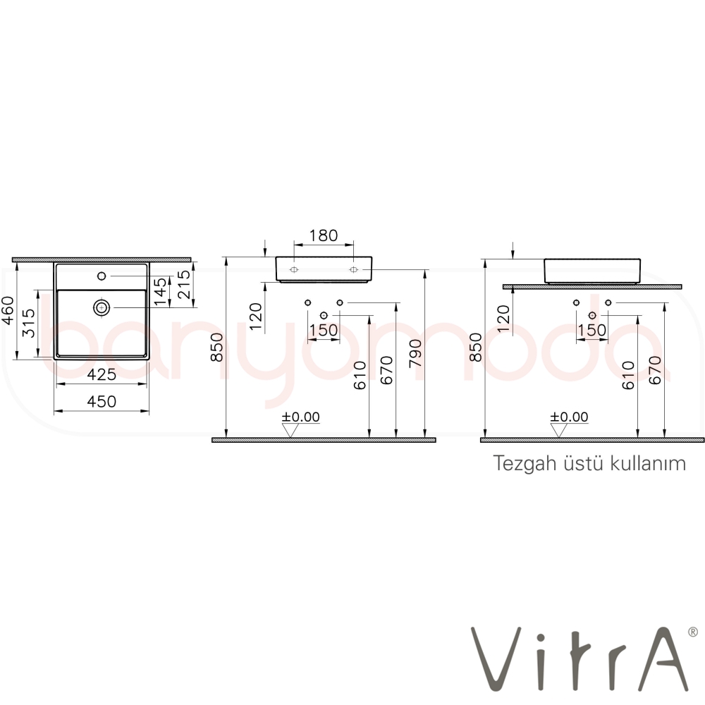 | Ürün Adı: | Vitra ArchiPlan Lavabo, 45x46 cm, VitraClean |