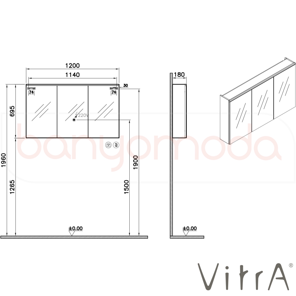 | Uyarı ve Genel Açıklamalar: | 4000K ve IP44, armatür LED aydınlatma bulunmaktadır. G sınıfı enerji verimliliğine sahiptir. Açma-kapama ayna altındaki tuş ile kontrol edilmektedir |