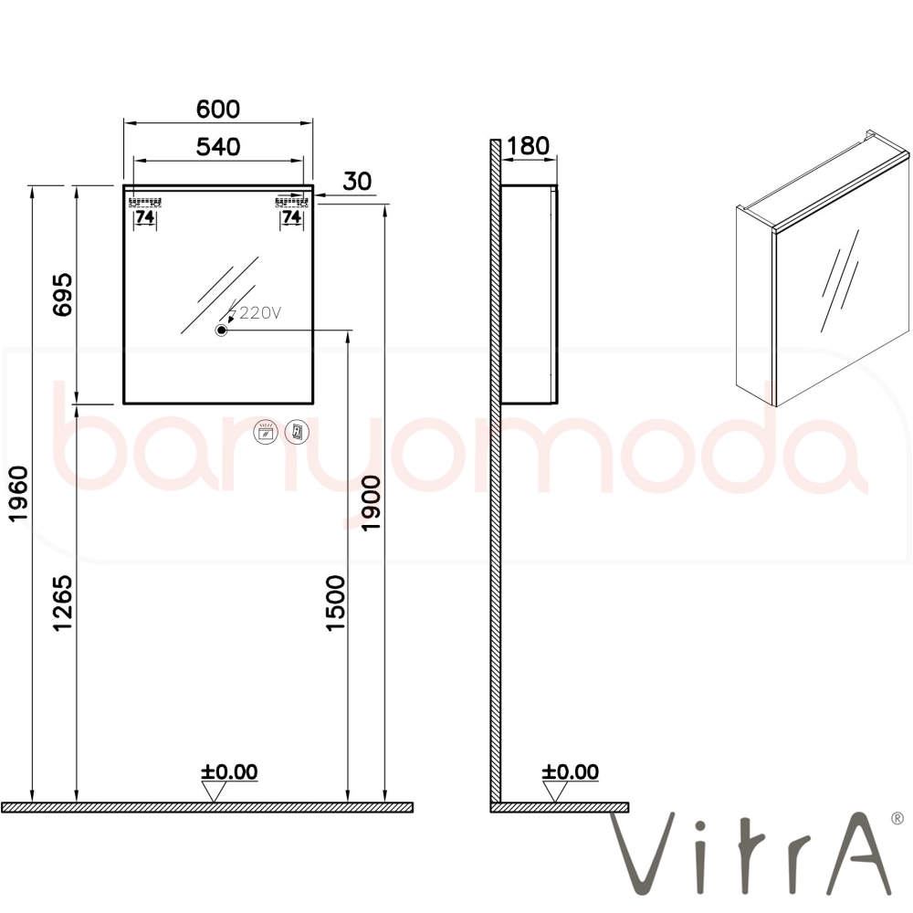 | Uyarı ve Genel Açıklamalar: | 4000K ve IP44, armatür LED aydınlatma bulunmaktadır. G sınıfı enerji verimliliğine sahiptir. Açma-kapama ayna altındaki tuş ile kontrol edilmektedir. |