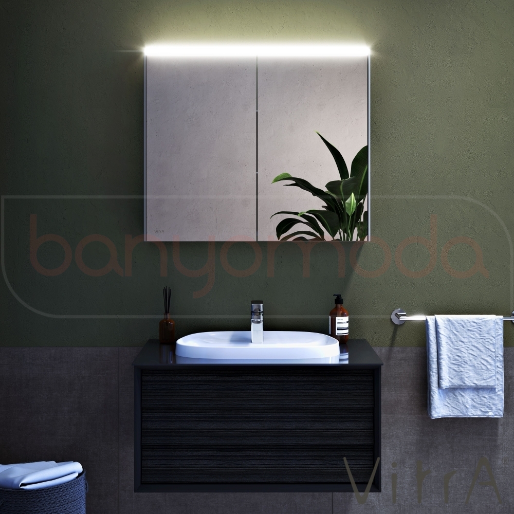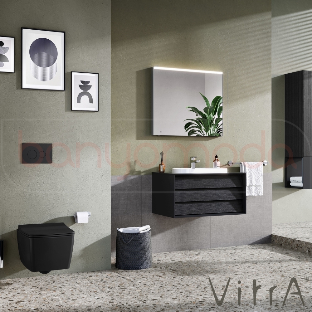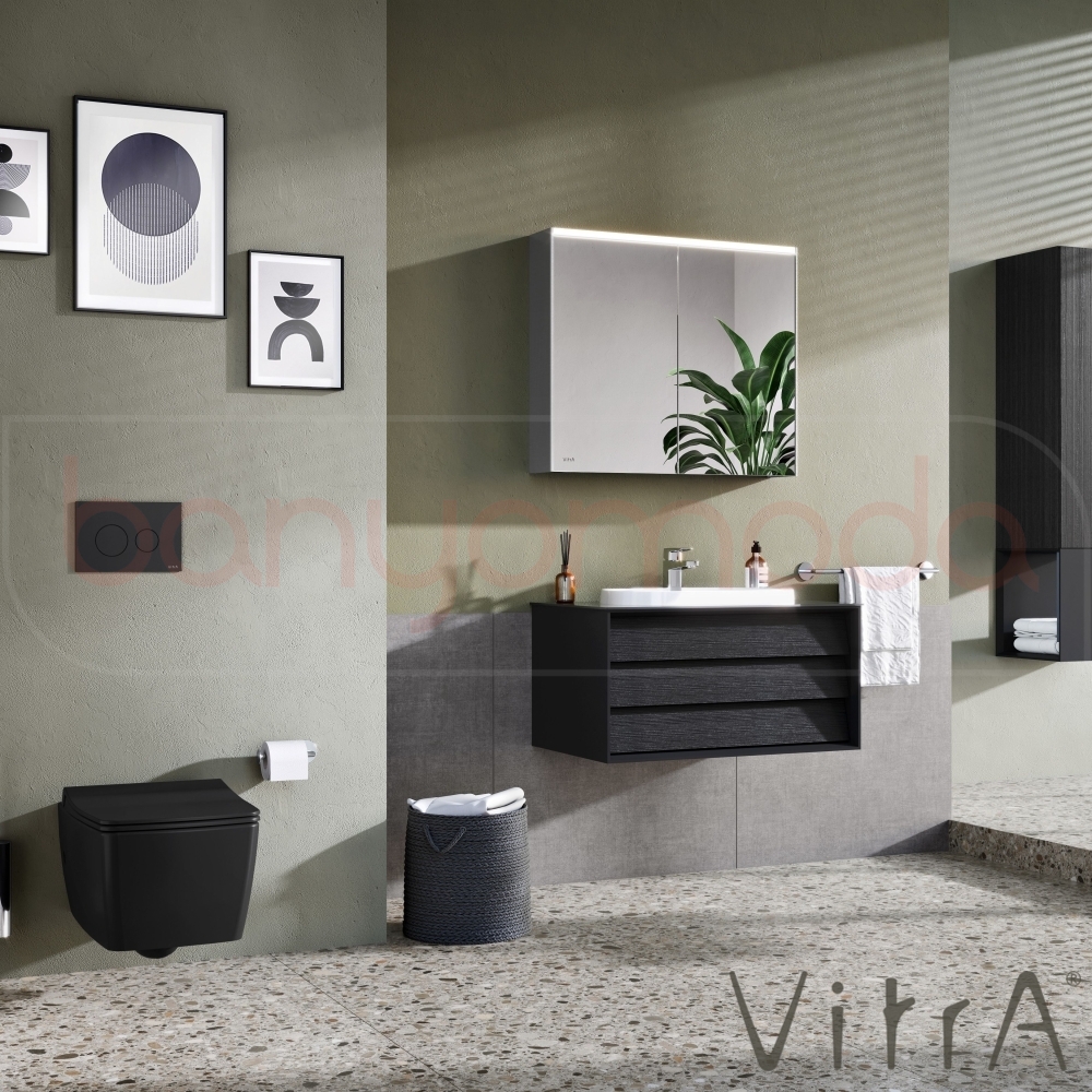 Vitra Frame Lavabo Dolabı, 80 cm, Çift Çekmeceli, Tezgahüstü Tv-Shape Lavabolu, Armatür Delikli, Mat Siyah