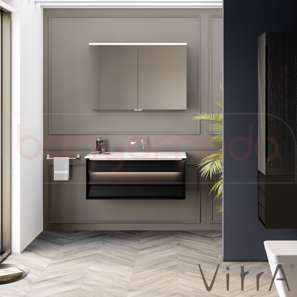 Vitra Frame Lavabo Dolabı, 80 cm, Lavabolu, Mat Siyah-Hareli Meşe (5708 Beyaz Lavabo Dahil)