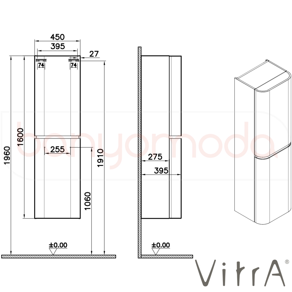 | Ürün Adı: | Vitra Gala Boy Dolabı, Mat Soft Beyaz (Sol) |