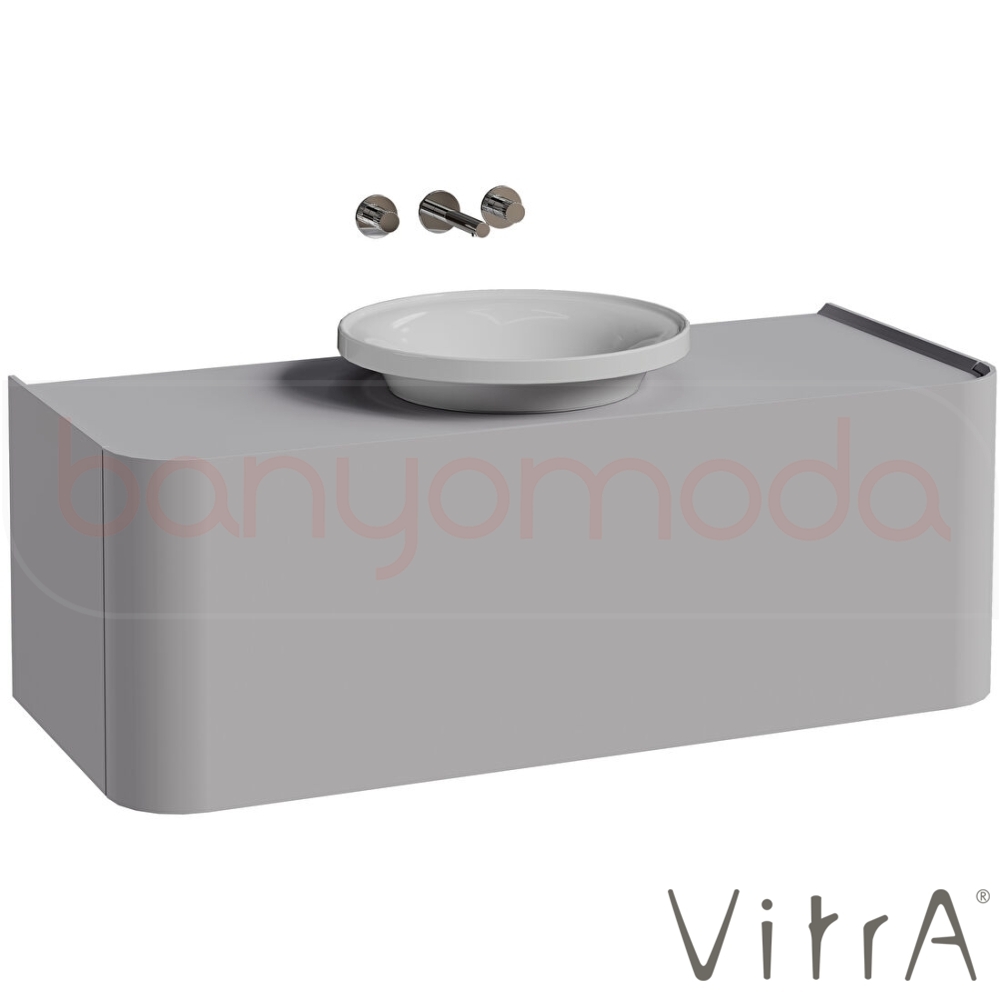 Vitra Gala Tek Çekmeceli Çanak Lavabo Uyumlu Lavabo Dolabı, Mat Taş Gri, 120 cm (Çanak Lavabo Dahil-Armatür Deliksiz)