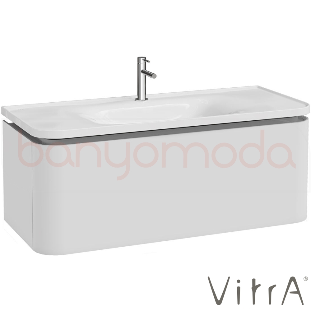 Vitra Gala Tek Çekmeceli Etajerli Lavabo Dolabı, Mat Soft Beyaz, 120 cm (Etajerli Lavabo Dahil-Tek Armatür Delikli)