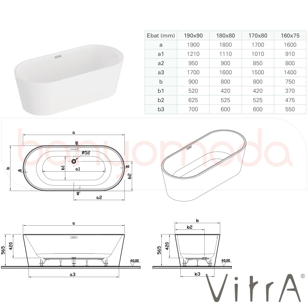 | Ürün Adı: | Vitra Geo 160x75 Oval Küvet, Dikdörtgen Taşmalı Sifon + Ayak, Beyaz |