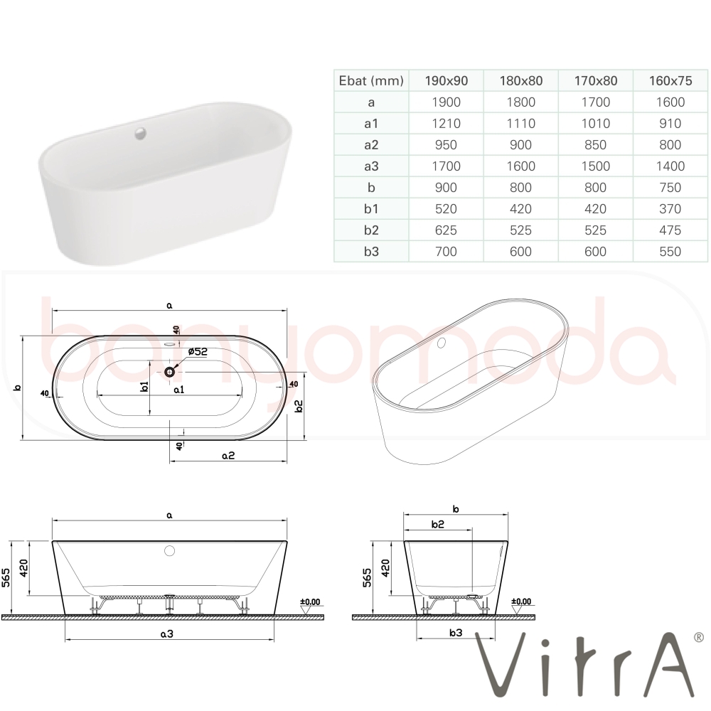 | Ürün Adı: | Vitra Geo 170x80 Oval Küvet, Standart Krom Sifon + Ayak, Beyaz |