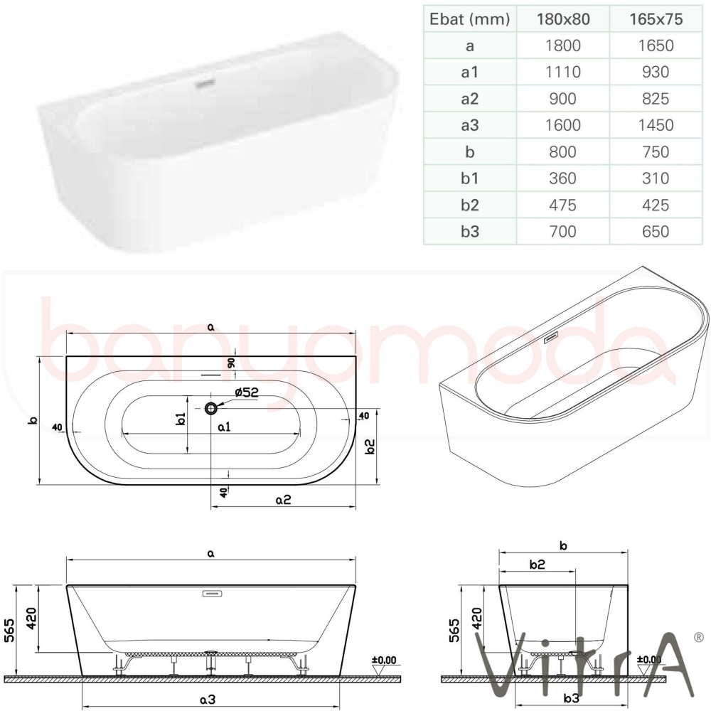 Marka: Vitra Ürün Adı: Vitra Geo 180x80 Ön Duvar Oval Küvet (Ayak ve Dikdörtgen Taşmalı Sifon Dahil), Beyaz Ürün Kodu: 65420007000 Seri: Geo Ölçü (cm): 180x80 Uygulama Şekli: Seramik üzeri Sifon: Sifon dahildir. Ayak: Ayak dahil. Panel: Ürün kendinden panellidir. Yetkili Servis Hizmeti: Var Ücretsiz Montaj: Yok Garanti Süresi: 2 yıl Üretim Yeri: Türkiye Genel Açıklamalar: Hidromasaj uygulaması yoktur. Duvar bağlantılı küvet. Dikdörtgen taşmalı sifon.