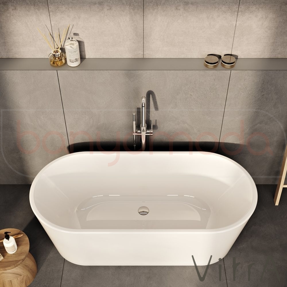 Vitra Geo 180x80 Oval Küvet, Standart Krom Sifon + Ayak, Beyaz