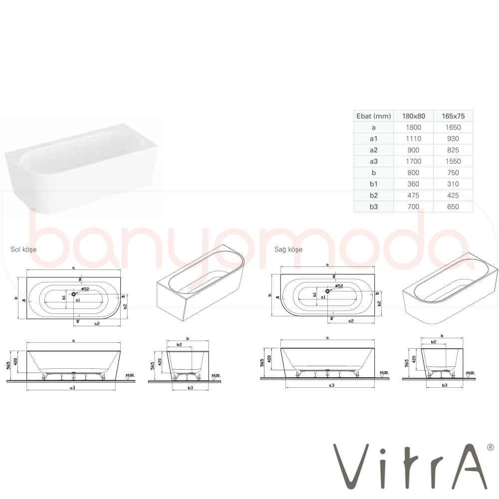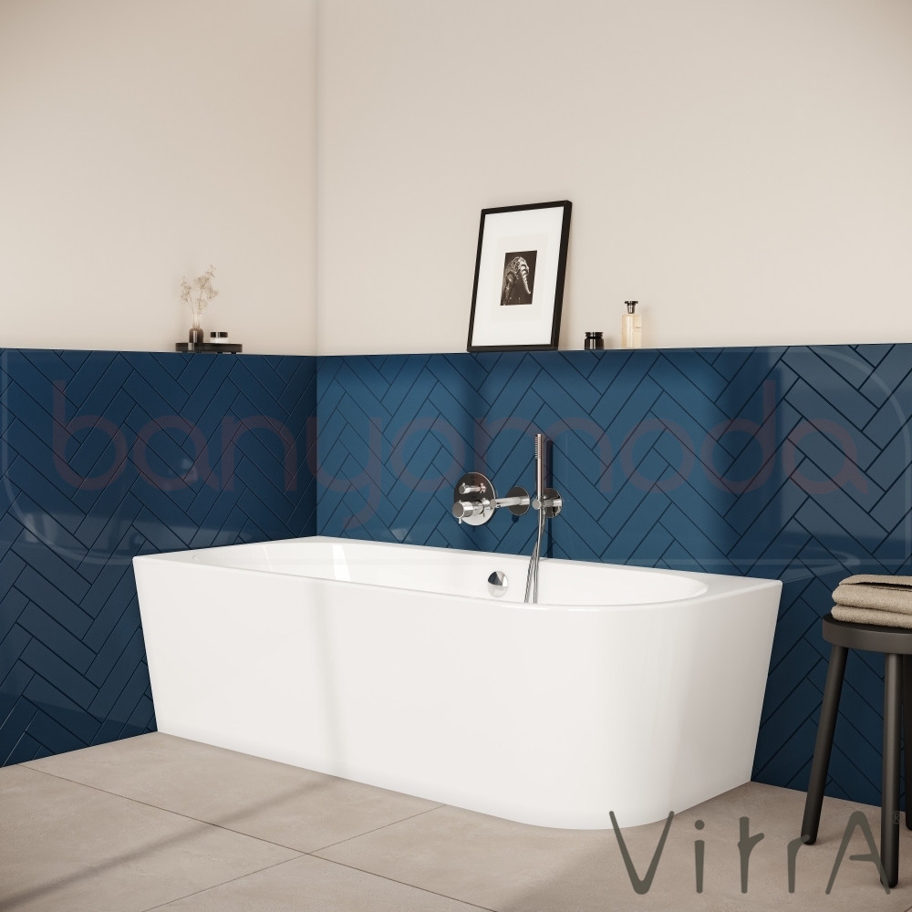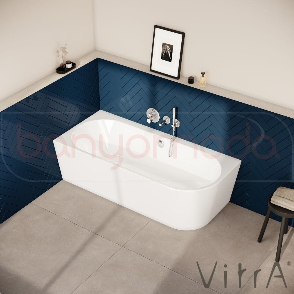 Vitra Geo 180x80 Sol Köşe Oval Küvet (Ayak ve Gizli Taşmalı Sifon Dahil), Beyaz